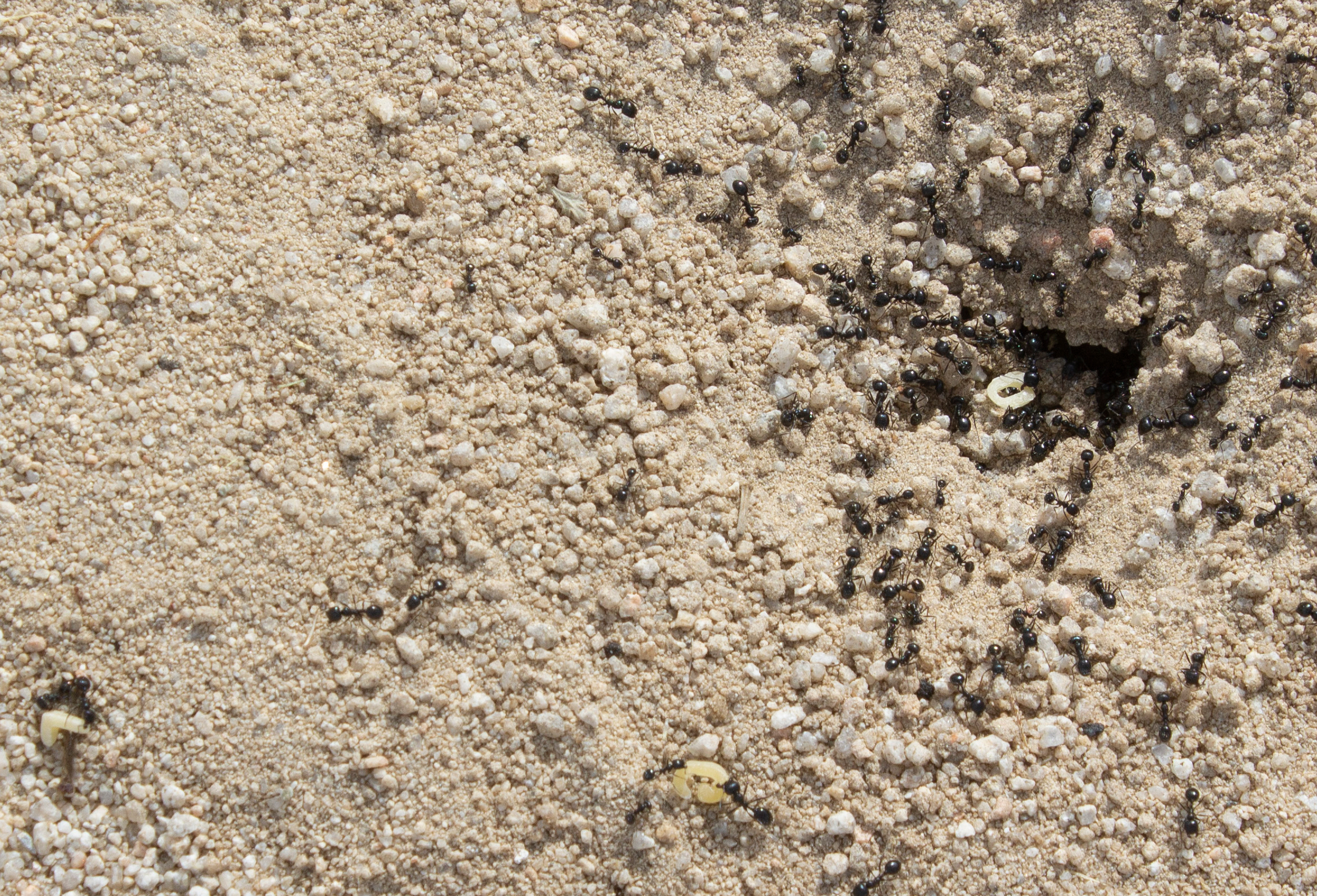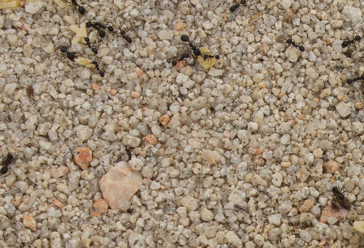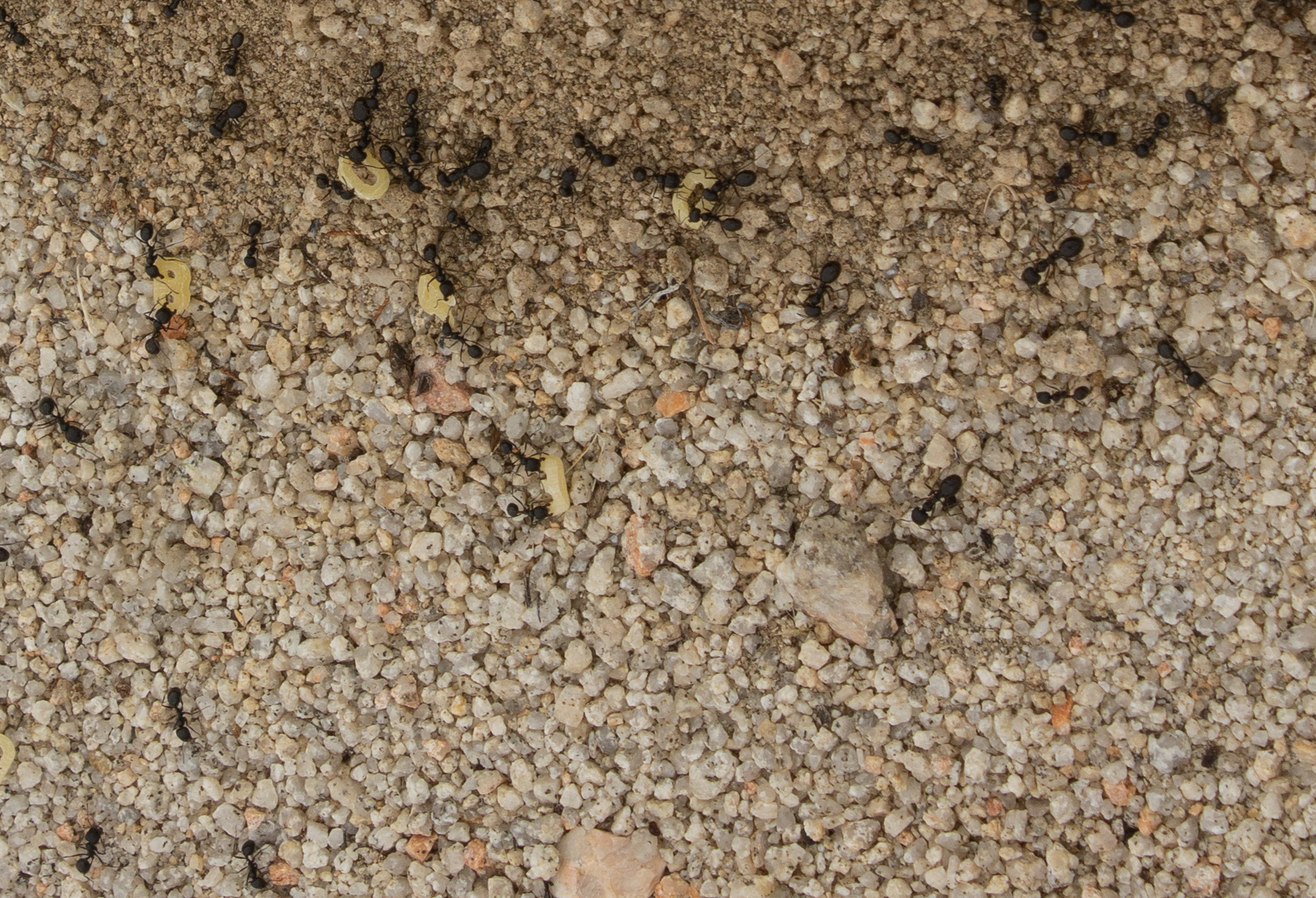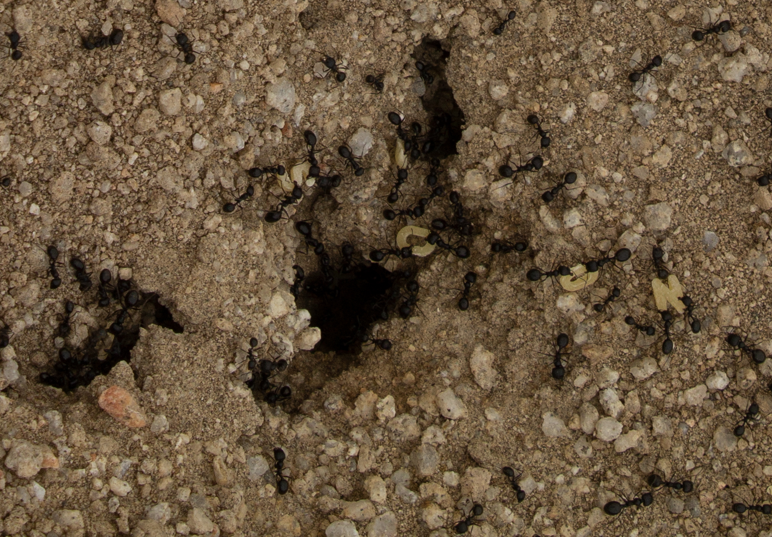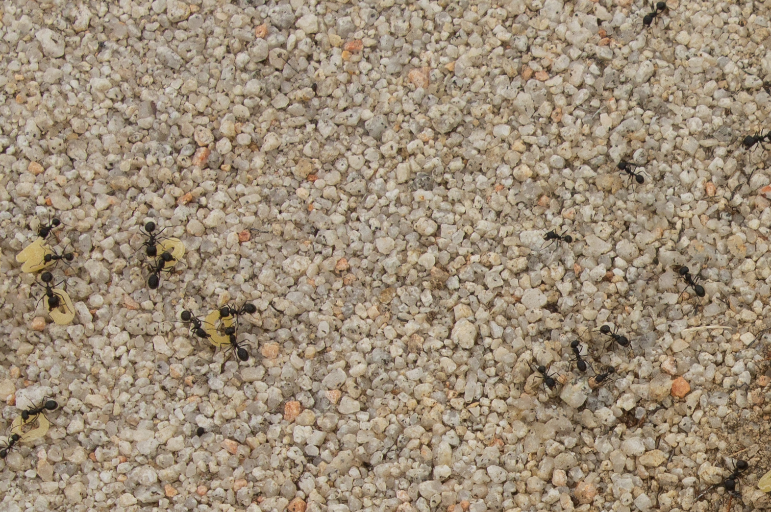 Feedings is a series of observations that capture the ants’ relationship to food and the artist’s relationship to language. After being given a pile of randomly selected letter-shaped pasta, the ants were documented moving the food back to their hills. As they moved, the ants spelled words. Instinct is interpreted as intention when the artist recognizes and personifies the order chosen by the ants.