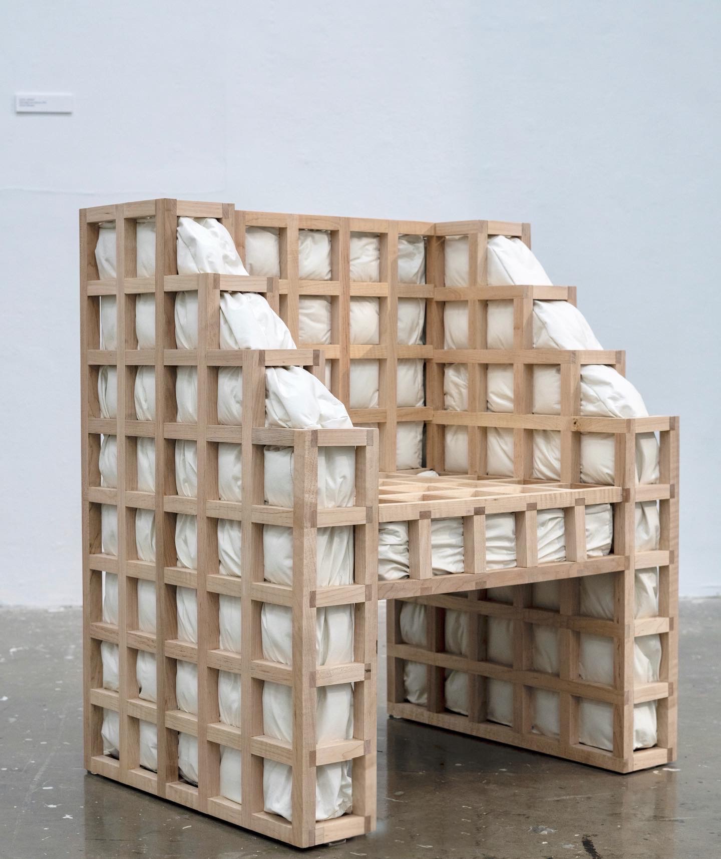 Soft Maple, Vinyl, Upholstery Foam, and Secrets, 38 x 30 x 30 inches